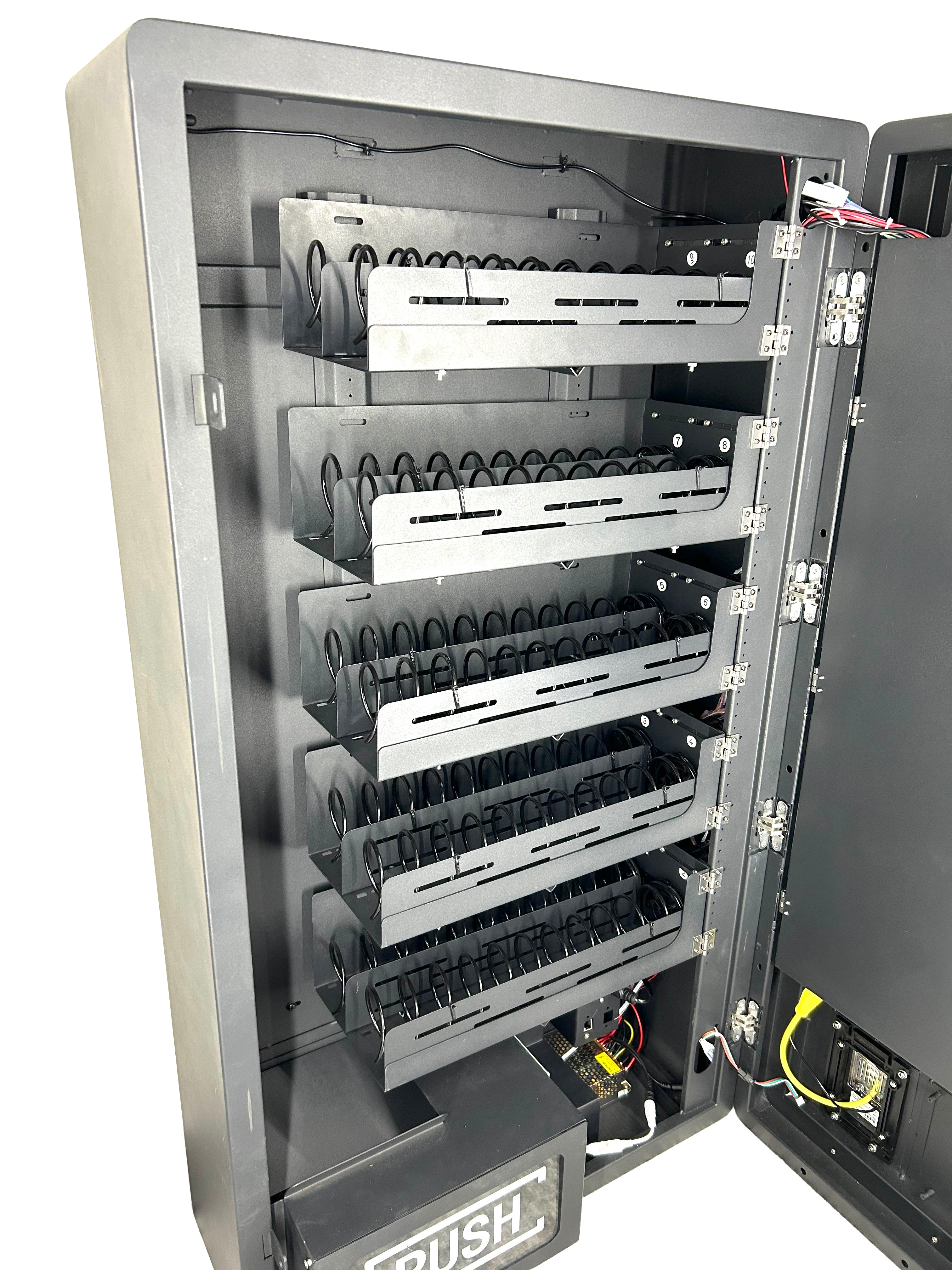 The machine is very user friendly and is designed to dispense a wide variety of products, including disposable vapes, CBD items, nicotine pods, and even small wellness products, acting as a snack vending machine. Each row is adjustable to fit different product sizes and have easy access to your favorite vape.
